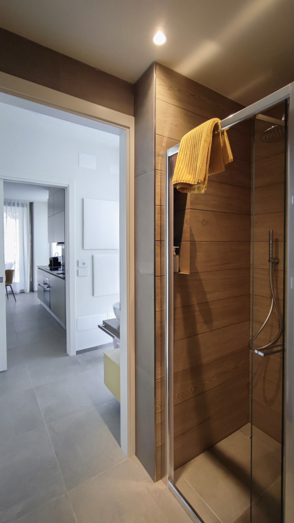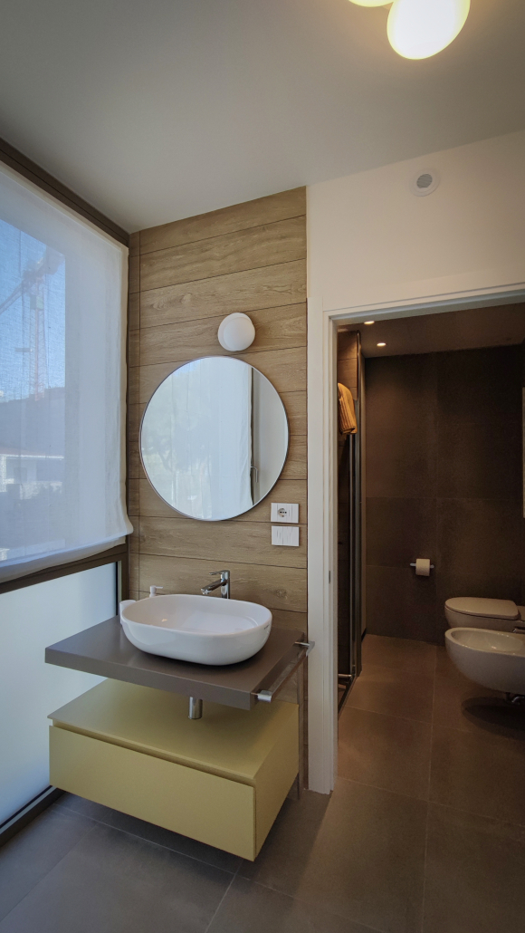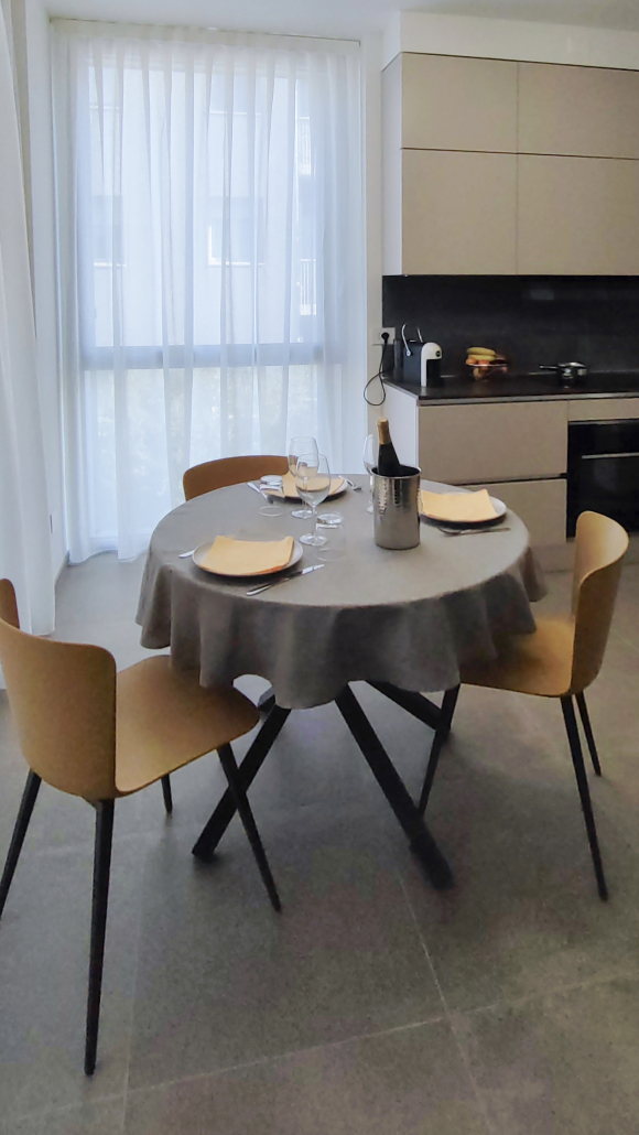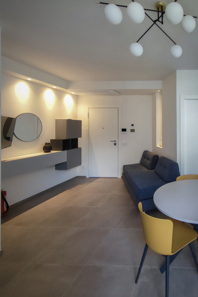 Situato al secondo piano di una palazzina di nuova costruzione, l’appartamento è arredato in stile contemporaneo ed è dotato di tecnologie di ultima generazione: impianto VMC per il ricambio continuo dell’aria, riscaldamento a pavimento e aria condizionata, per un comfort ideale in ogni stagione.