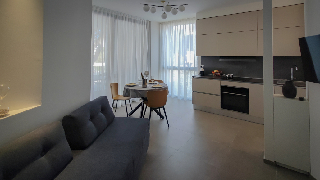 Un appartamento moderno nel centro di Riccione, a pochi passi da Viale Ceccarini, dal Palariccione e dal mare, perfetto per coppie o piccoli nuclei familiari.